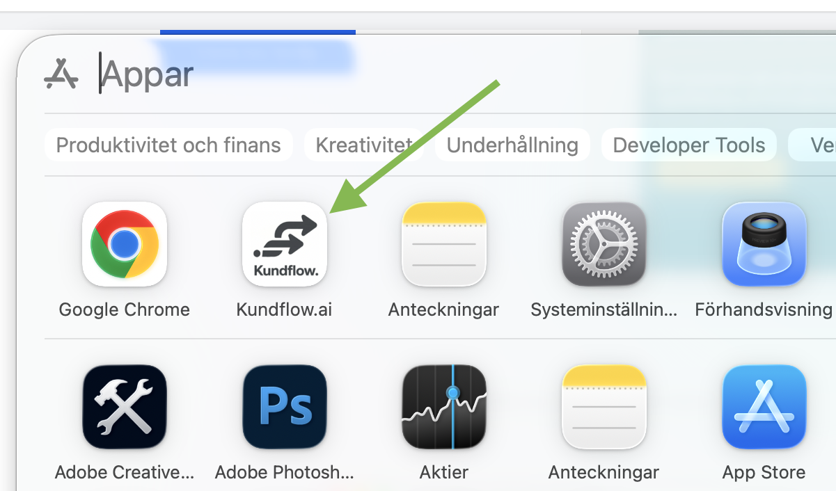 Ladda ner, installera och starta från desktop varje gång istället för i Chrome. Logga in med samma email + password som du har för "vanliga" Kundflow/PSF